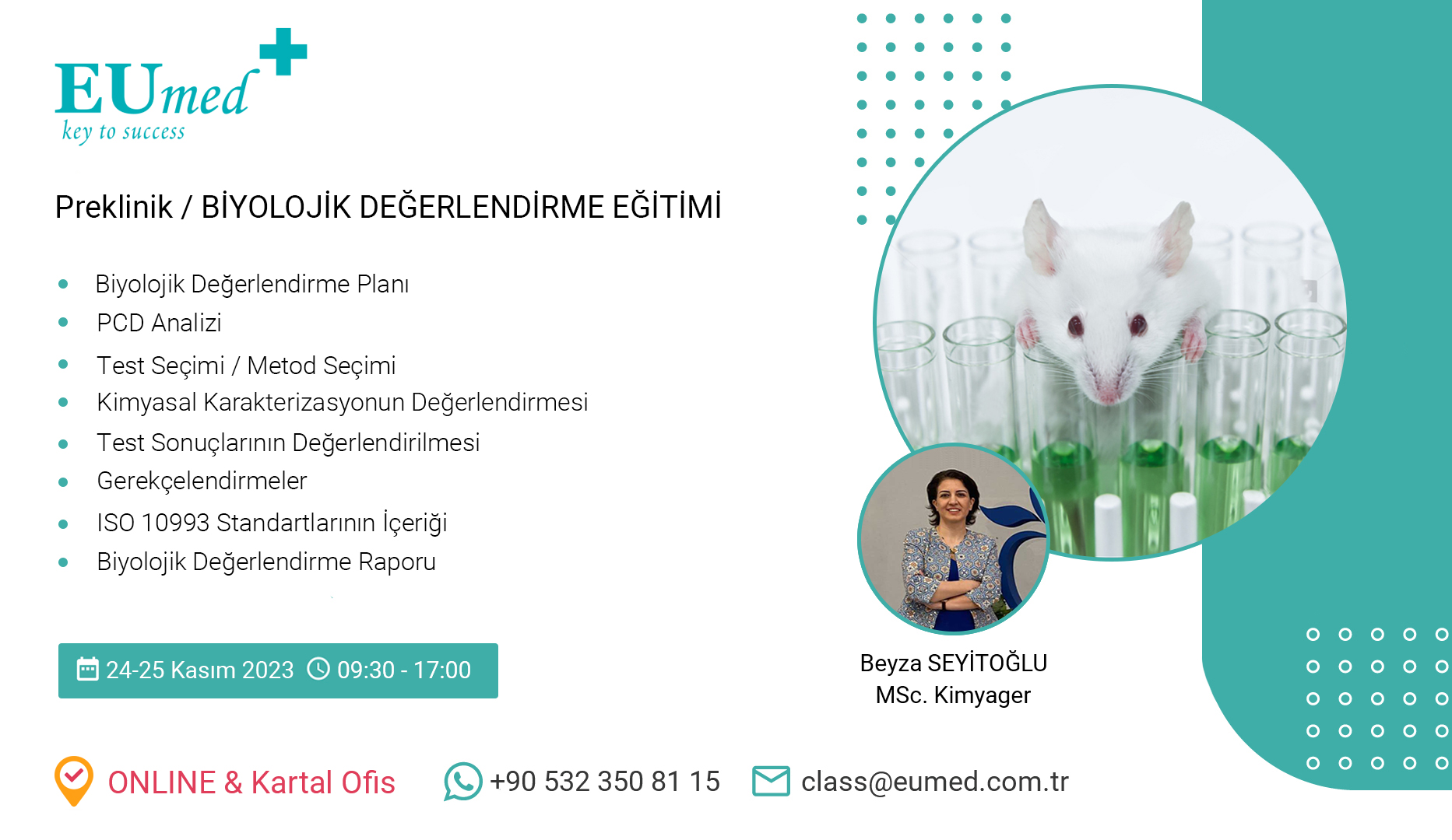 24-25 Kasım 2023 tarihlerinde Preklinik / Biyolojik Değerlendirme Eğitimi gerçekleştireceğiz.