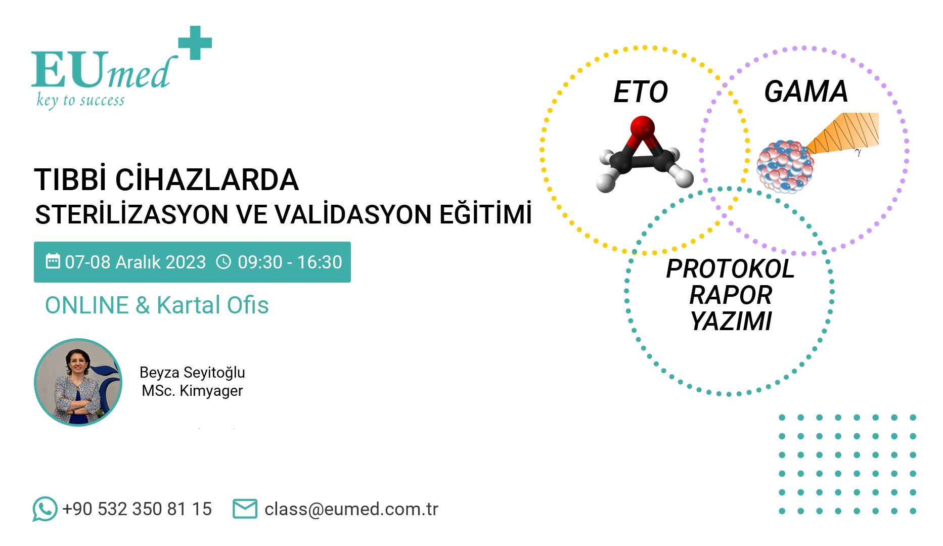 07-08 Aralık 2023 tarihlerinde Tıbbi Cihazlarda Sterilizasyon ve Validasyon Eğitimi gerçekleştireceğiz.